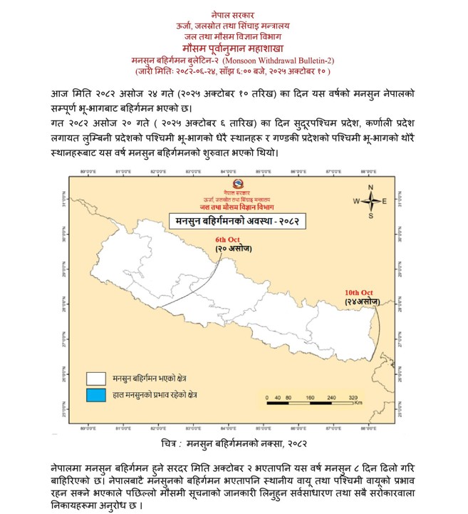 यस वर्षको मनसुन नेपालबाट बाहिरिएको छ ।