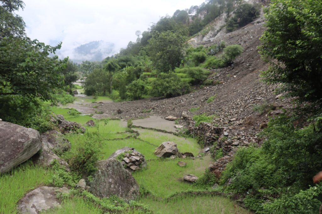 दलित समुदायको बसोबास रहेको गाउँ पहिरोका कारण रित्तिएको छ । ‘पहिरोले जोखिम बढेपछि पूरै परिवार विस्थापित छन्,’ गाउँपालिका उपाध्यक्ष सुलोचना बुढा भन्छिन्, ‘सम्पत्तिका नाममा घर मात्र रहेका दलित परिवार बिचल्लीमा छन् ।’