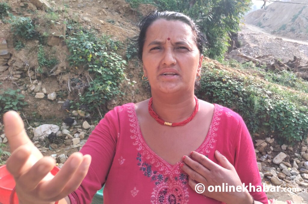 तिनै खानीबाट निस्केको माटो बाढीले बगाएर ल्याएकै कारण आफ्नो घरमा क्षति पुगेको उनले देखेकी छिन् । ढुंगा खानी सञ्चालन हुँदा गाउँमा विकासभन्दा विनास भएको उनले बुझेकी छन् । ‘न बाटो बनेको छ । न त अरू सुविधा छ,’ उनी भन्छिन्, ‘हाम्रो गाउँमा खानी चलाएर राजस्व उठाइन्छ । दुःख हामीले भोग्नुपर्छ ।’